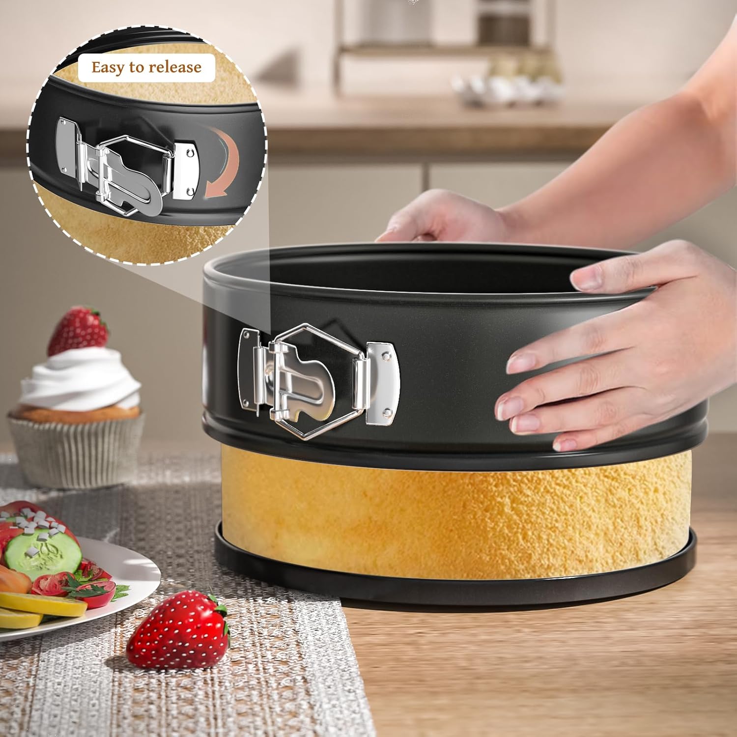Stainless steel is non-reactive, meaning it won’t interact with acidic ingredients. It’s also durable and easy to clean, but it doesn’t conduct heat as well as aluminum, so baked goods may take longer to cook.