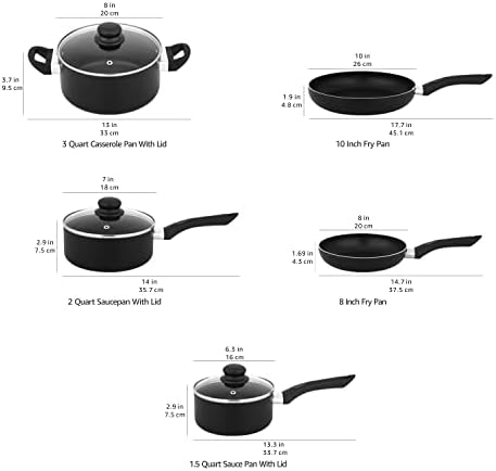 Moreover, the pots and pans in this set are constructed with durable aluminum, offering exceptional heat distribution. This feature ensures that your food cooks evenly and efficiently, making every dish a culinary success. The sturdy construction also ensures longevity, so you can enjoy the benefits of this cookware set for years to come.