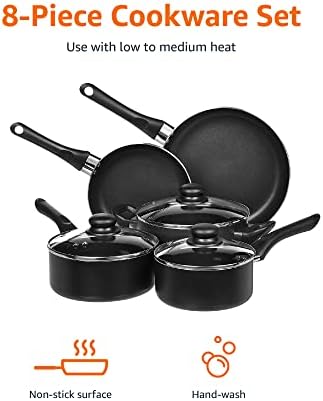 Amazon Basics Non-Stick Cookware 8-Piece Set, Pots and Pans, Black
