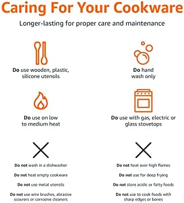 To maintain the longevity of this cookware set, store the pots and pans in a cool, dry place. Stack them carefully, using protective padding or kitchen towels between each item to prevent scratching or chipping. Following these simple maintenance steps will ensure that your Amazon Basics Non-Stick Cookware Set stays in excellent condition over time.