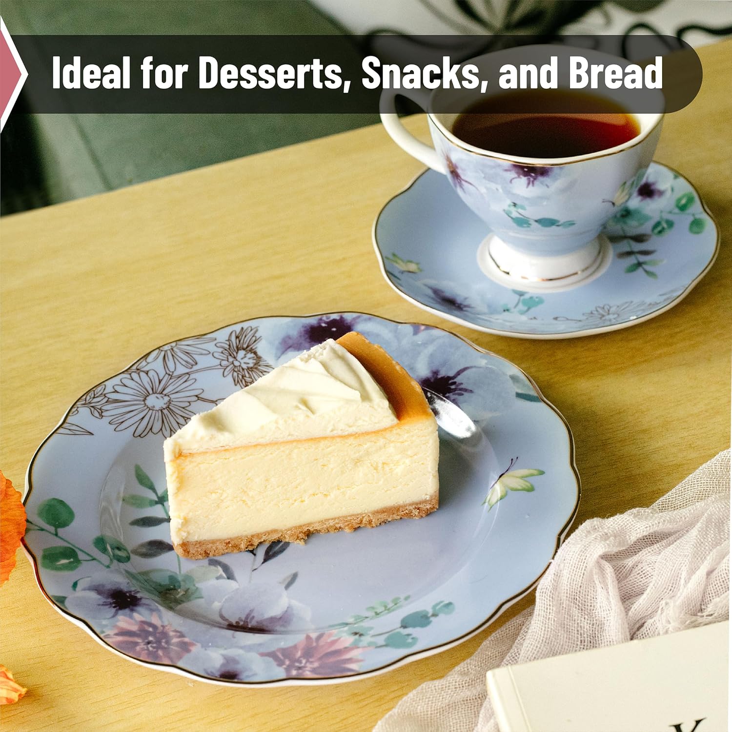 BTaT- Porcelain Floral Plates, 8 inch, Set of 6, Royal Dessert Plates, Appetizer Plates, Floral Plates, Salad Plates, Small Plates, Small Plates Set, Small Dishes, Dinnerware