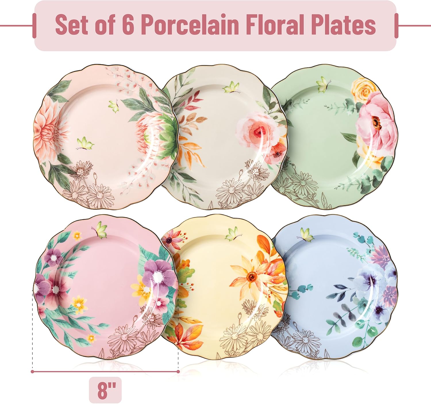 • Keyword: BTaT, Porcelain, Floral Plates, Dinnerware, Set, of, 6, Plates, Royal Dessert Plates, Appetizer Plates, Floral Plates, Salad Plates, Small Plates, Small Dishes